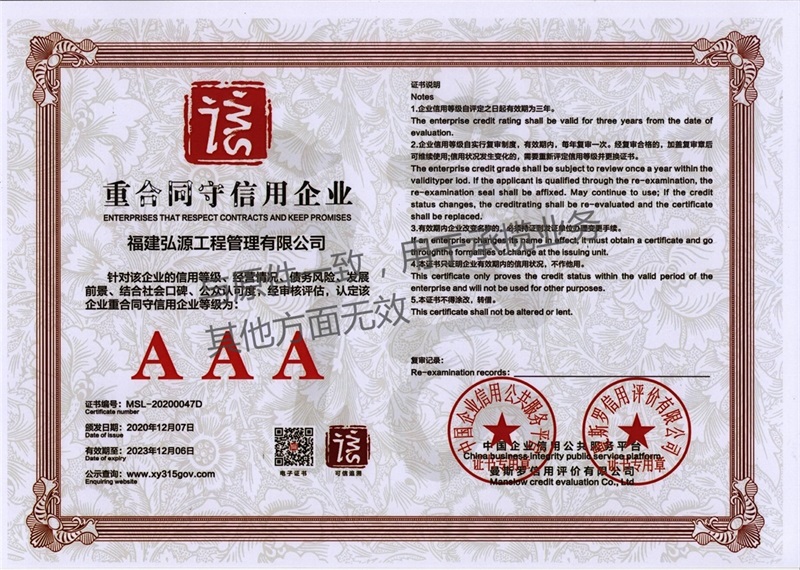 福建弘源工程管理有限公司 3A证书