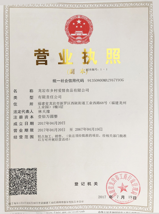 龙岩市乡村爱情食品有限公司,是新罗区食品饮料十大品牌企业
