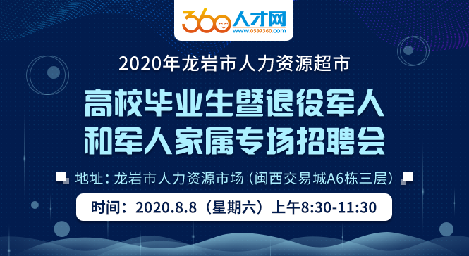 龙岩360人才网是龙岩人才,龙岩人才网,新罗人才网,龙岩工作网,龙岩大型招聘网站,免费提供企业招聘、人才求职简历招聘信息和龙岩人才网招聘,龙岩人才网***新招聘信息,龙岩***新工作招聘信息,每月2次龙岩人才招聘会,找工作上龙岩360人才网:0597-2227070