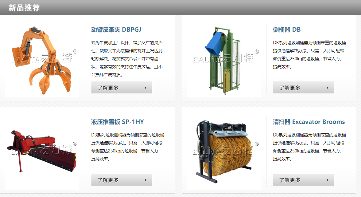 主营产品:叉车属具、挖机属具、农机属具