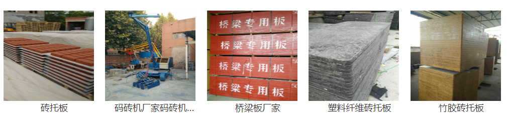 本公司专业生产销售砖机配套设备。有砖机托板,桥梁板,建筑模板,车箱栏板等。按需订做,耐磨,耐压,抗震,防腐,韧性好,厂家直销。价位低,性价比高。达到出口标准,免费办理双检,税点低,退税高。我公司生产的自动上板机,码砖机,运砖叉车,码垛机等适合各种规格型号砖机配套使用。产品质量深受客户好评。