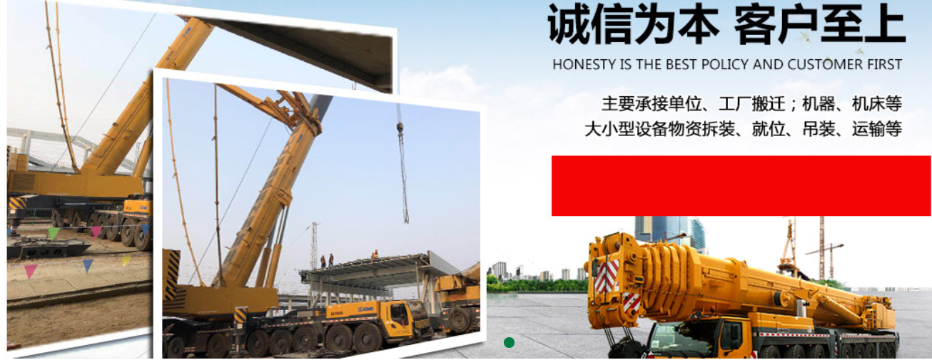 第一服务项目:起重,吊装,搬运,搬厂,搬家,货运,物流,石家庄吊车出租,货车出租为一体的服务。电梯、扶梯、集装箱、印刷设备、工艺品、高空吊篮、高空升降车、高层设备吊装、地下机器搬迁就位、大型钢构桥梁安装、装卸塔吊、厂矿搬迁、工厂搬运、单位搬家,钢琴搬运,空调吊装,机器,机床,精密仪器,印刷机,变压器,发电机组,泠水机组。